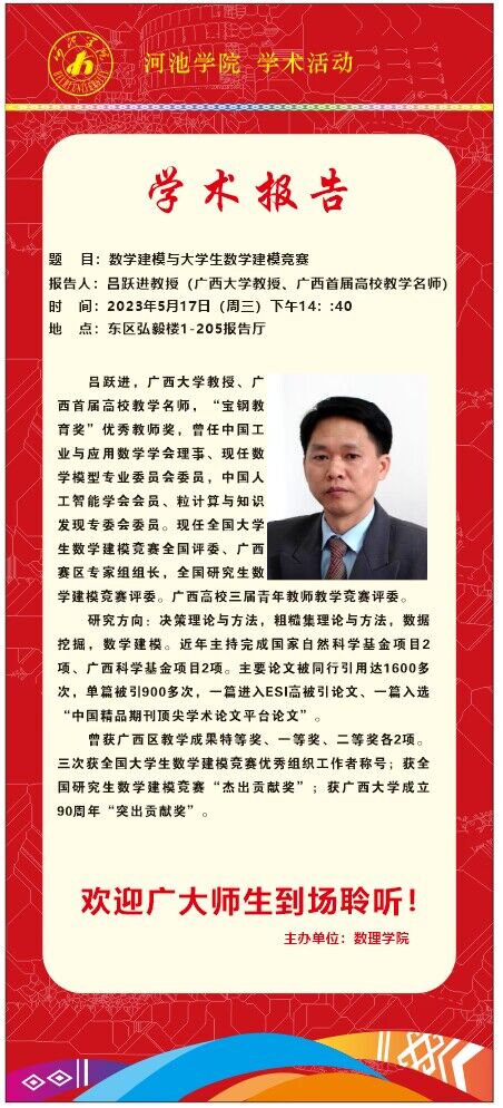 【学术报告】数学建模与大学生数学建模竞赛