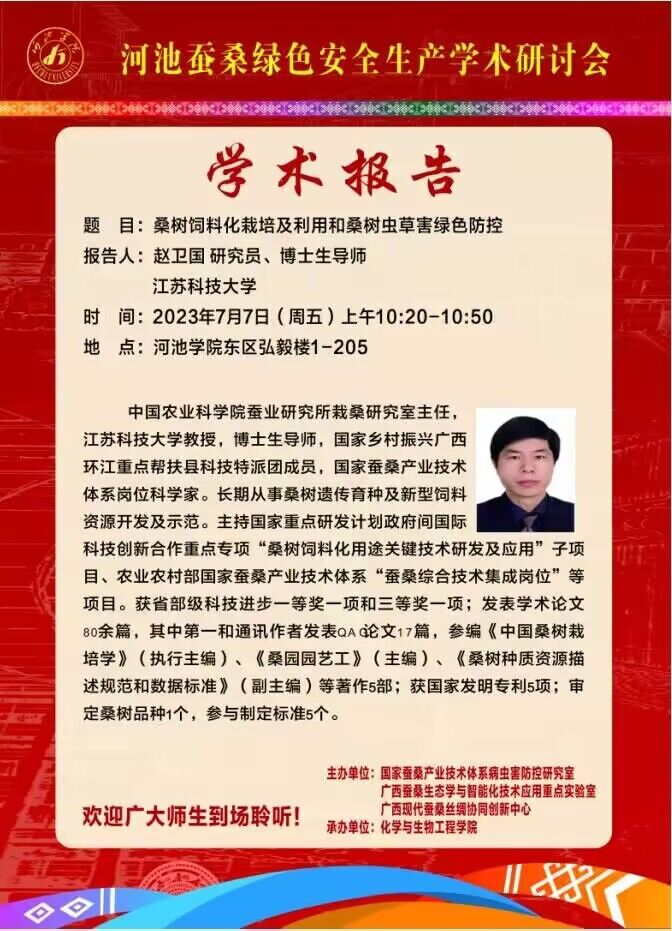 【学术报告】桑树饲料化栽培及利用和桑树虫草害绿色防控