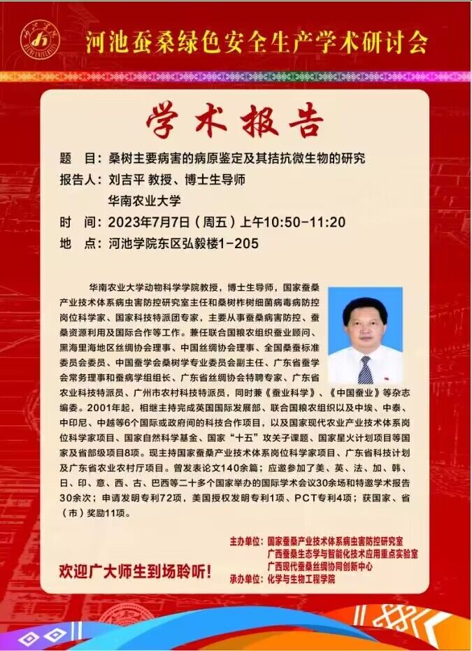 下一篇:【学术报告】养蚕防病技术与微生物组学研究