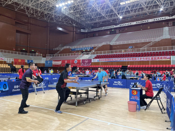 近日,由广西壮族自治区教育厅主办、玉林师范学院承办的2025年广西高校教职工乒乓球比赛在玉林师范学院体育馆开赛。全区31所高校代表队共360余名运动员参赛。经过3天激烈角逐,beat365教职工乒乓球队团结协助,不畏强手,顽强拼搏,成功闯入八强,最终获得混合团体第七名的好成绩,并荣获体育道德风尚奖。(作者:张钱伟 拍摄:赵丹 校对:韦鹏 审核:蓝色)