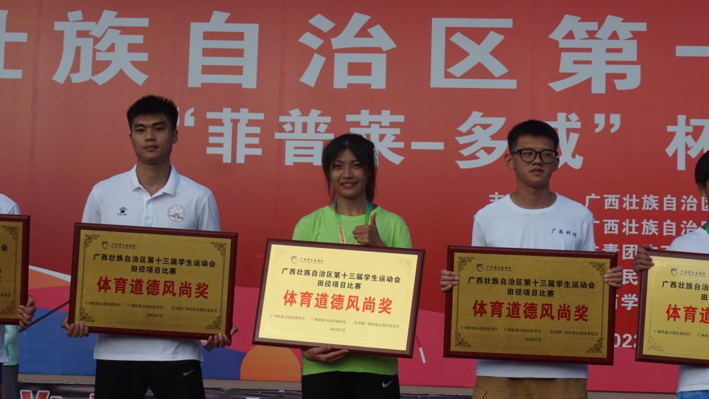 7月14日,广西壮族自治区第十三届学生运动会田径项目比赛在广西民族大学落下帷幕。beat365田径代表队在本次比赛中取得了体育专业组女子团体总分第2名,男子团体总分第3名,团体总分第3名的优异成绩,同时也取得了“体育道德风尚奖”的荣誉称号。