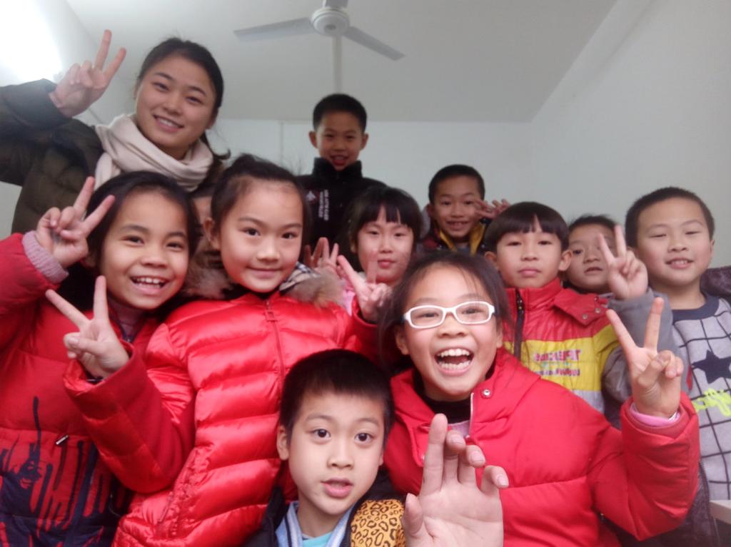 刘喆在培训机构和孩子们一起