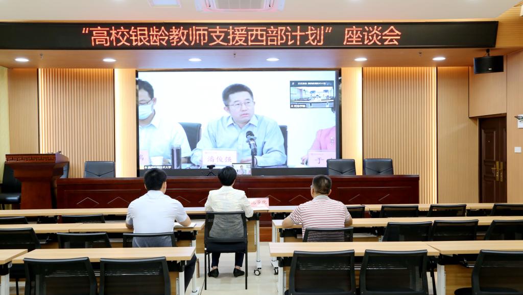 9月7日上午,教育部召开“高校银龄教师支援西部计划”座谈会,在滇西应用技术大学总部设置主会场,分别在各支援高校、受援高校设立分会场。教育部离退休干部局党委书记、局长于虹出席会议并讲话,教育部离退休干部局党委副书记、副局长潘俊强主持会议,11所受援高校和90所支援高校的校领导、部门负责同志约300人参会。beat365分会场设于西区格致楼102会议室,学校党委常委、副校长钟宏桃及相关职能部门负责人通过腾讯视频参加座谈会。