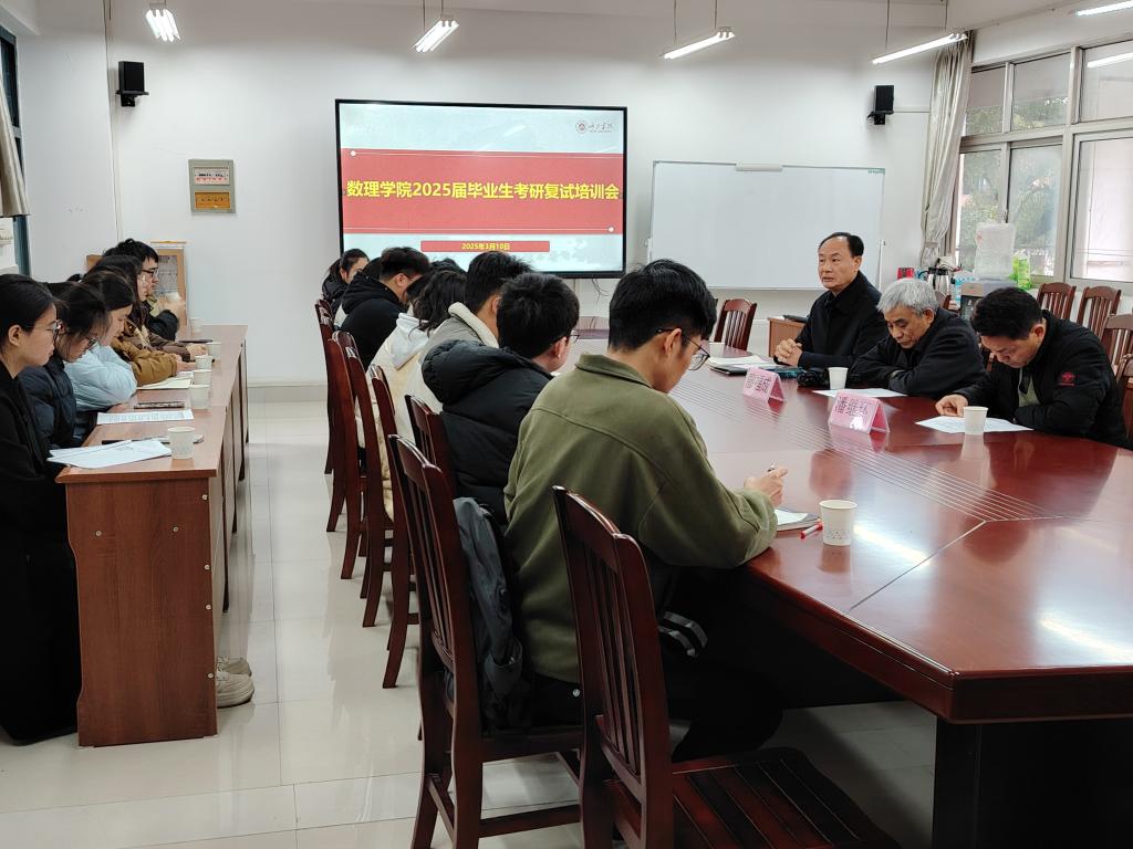 为助力考研学子科学备战复试,有效提升升学竞争力,3月10日,beat365数理学院在逸夫楼203会议室组织开展2025届毕业生考研复试专题培训会。银龄教师廖福成教授、高英俊教授应邀出席活动,学院院长韦玉程、副院长潘继环及2025届考研上线毕业生参加培训会。会议由潘继环主持。