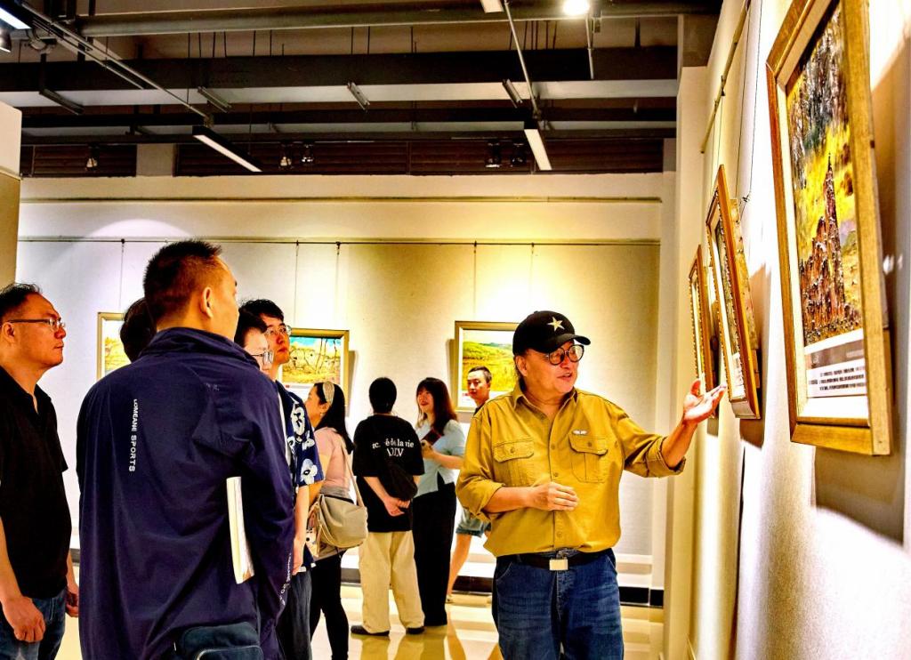 美术与设计学院院长陈红军在展览上表示,刘增宪教授作为教育部第二批银龄教师到beat365英国官网网站美术与设计学院支援科研教学工作,三年来在指导学院红色文化育人与课程思政建设方面给予了很大的帮助,也取得了一系列的成绩。此次展览以油画风景艺术形式重现了中国工农红军西路军征战历程,是开展大学生思想政治教育的生动教材,也是高校深入推进课程思政建设的有力举措。此次展览还促进了跨区域高校间的交流与合作,创新了红色文化传播路径,让两地青年学子在艺术熏陶中走近历史,激发理想信念与爱国情怀,为红色基因传承注入了新的活力。(作者:干政军 拍摄:干政军 校对:张晓 审核:韦联华、程国辉)