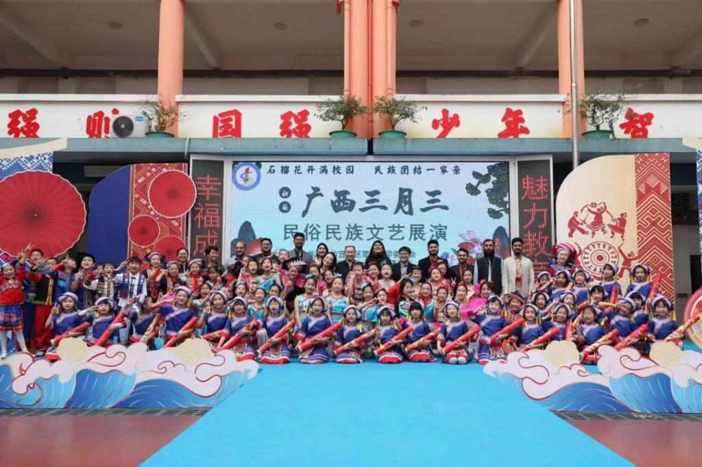 留学生参加“广西三月三”活动。