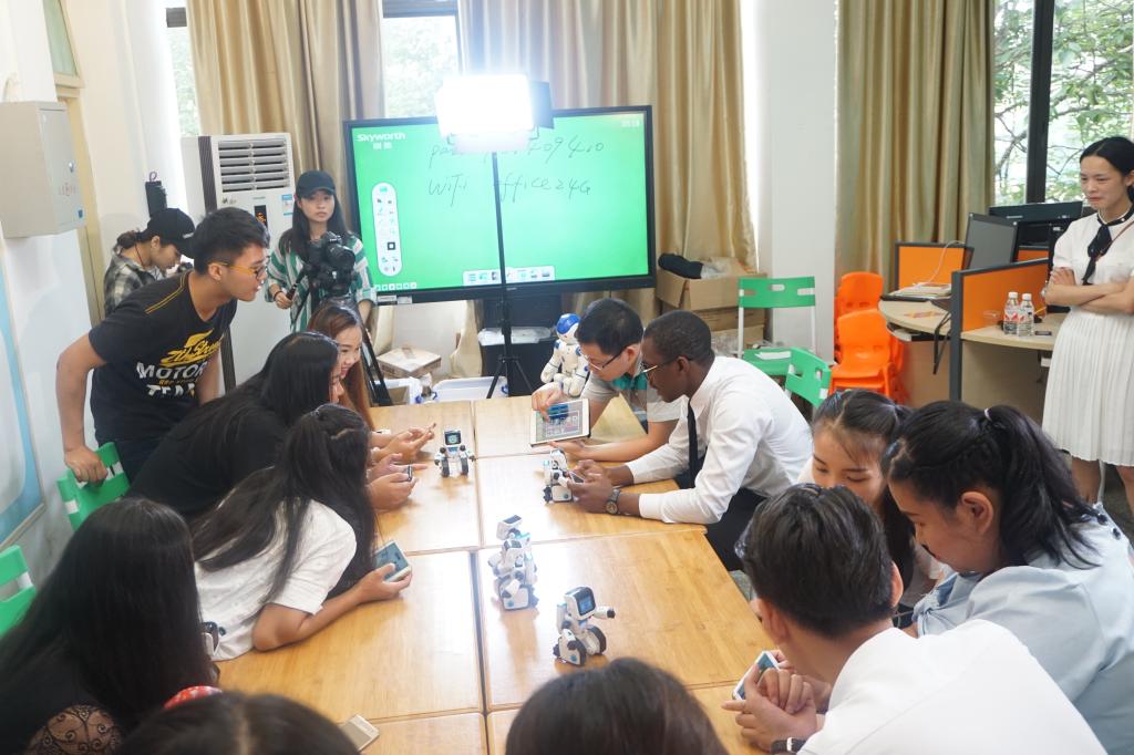 (产教融合)留学生到机器人教育培训中心学习。
