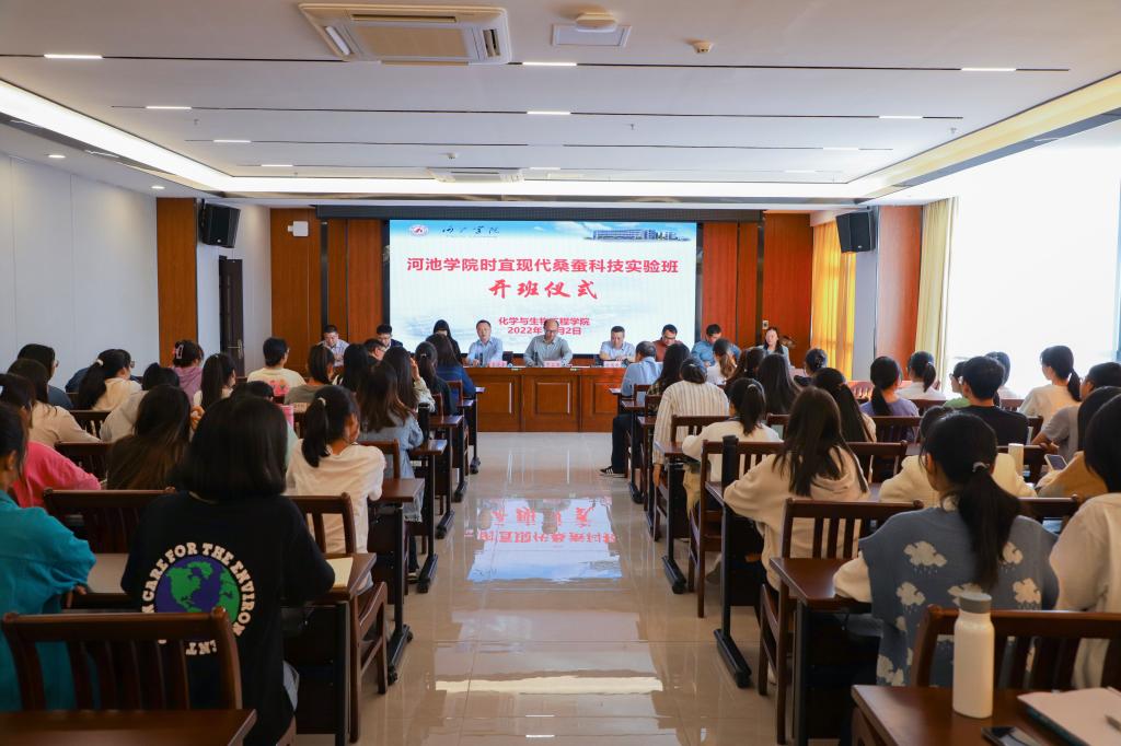 化生学院以应用型人才培养为目标,以扎根河池办学为路径,落实立德树人根本任务,不断完善人才培养体系,助推应用型人才培养。一是围绕地方蚕桑等产业,在现行的专业基础上通过课程微辅修、校企联合办班等方式为地方培养产业专门人才。并结合新农科建设,在每个专业融入了蚕桑产业相关课程,优化了课程体系,努力构建适应河池经济社会发展的应用型本科人才培养体系。二是不断探索和实践人才培养模式。在生物类本科人才培养模式方面进行了有效探索与实践,2023年申报的教学成果《一结合五融入:地方高校生物学类专业大学生创新能力培养的探索与实践》,获得了自治区级教学成果奖二等奖。