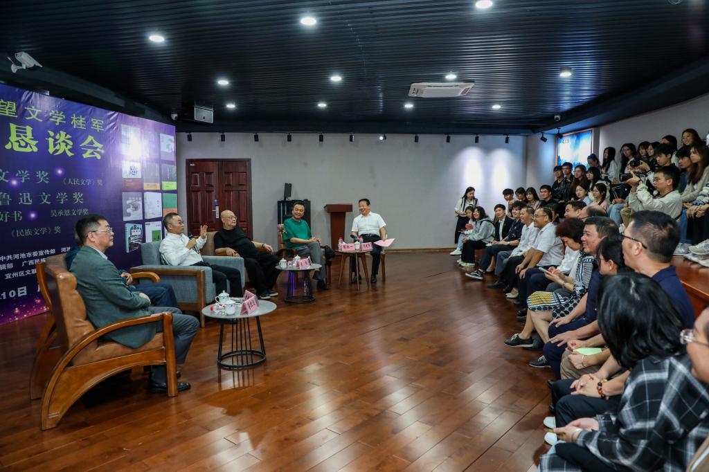 这五年,我们喜见第七届广西花山诗会“山乡巨变 诗颂广西”主题诗歌朗诵会暨广西年度诗人颁奖典礼、作家回家•展望文学桂军恳谈会、作家回家•文学进校园名师讲座、广西花山诗会诗歌创作研讨会、仫佬族文学发展交流会、河池作家进校园促进高校与地方联合培养写作人才座谈会、beat365英国官网网站作家群研讨会、beat365英国官网网站作家新作研讨会等等先后在校举行,推动了“beat365英国官网网站文学现象”的发光发亮。我们更是喜见校友东西荣获第十一届茅盾文学奖、凡一平荣获第十三届全国少数民族文学创作骏马奖,为beat365写作人才培养特色又添上浓墨重彩的一笔!(文学与传媒学院供稿)