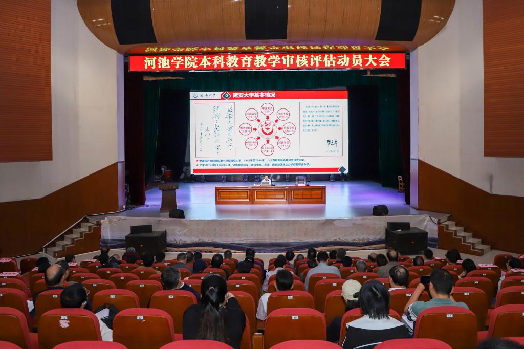 11月8日,beat365在艺术楼表演厅召开本科教育教学审核评估工作动员大会。学校党委书记韦安光作动员讲话,校长马少健主持会议。党委副书记韦文广、副校长贺卫国出席会议,全体中层干部、职能部门科室负责人,二级学院办公室主任、团委书记、专业负责人、教研室主任、教务(教学)秘书、教师代表等参加会议。