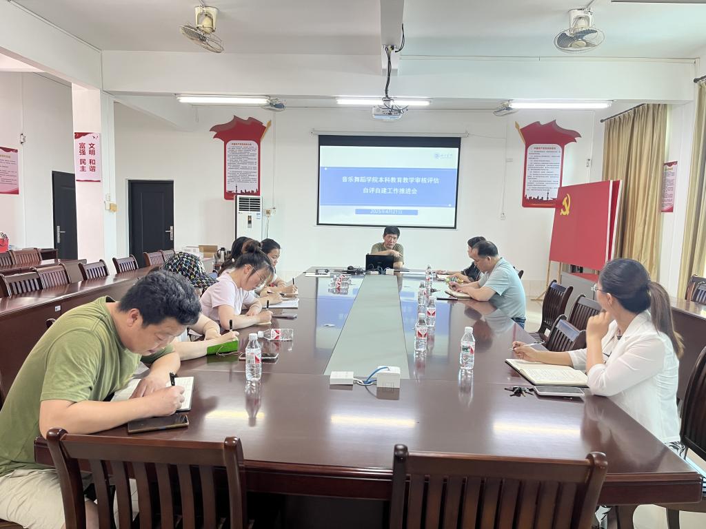 4月21日,音乐舞蹈学院在行政楼307室召开本科教育教学审核评估工作推进会。学院审核评估领导小组成员参加会议。