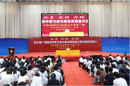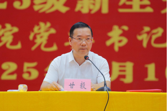 9月16日上午,beat365英国官网网站在体育馆隆重举行2025级新生开学典礼暨“开学第一课”。校党委书记甘毅以“此身、此时、此地,在壮美广西建设中努力成为堪当民族复兴重任的时代新人”为题,为全体新生讲授了一堂深刻而富有感召力的“大学第一课”。
